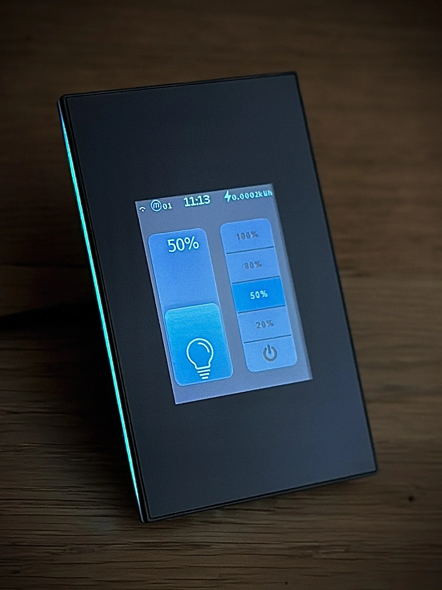 To save energy, the switch turns to standby mode automatically with the panel light dimmed to the level according to your setup. The switch background LED light can be turned off via the app either permanently or in a time frame.
